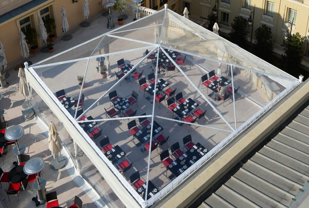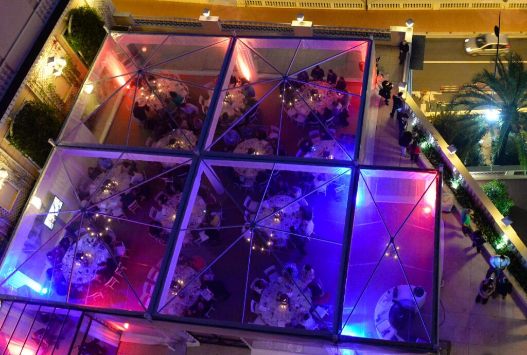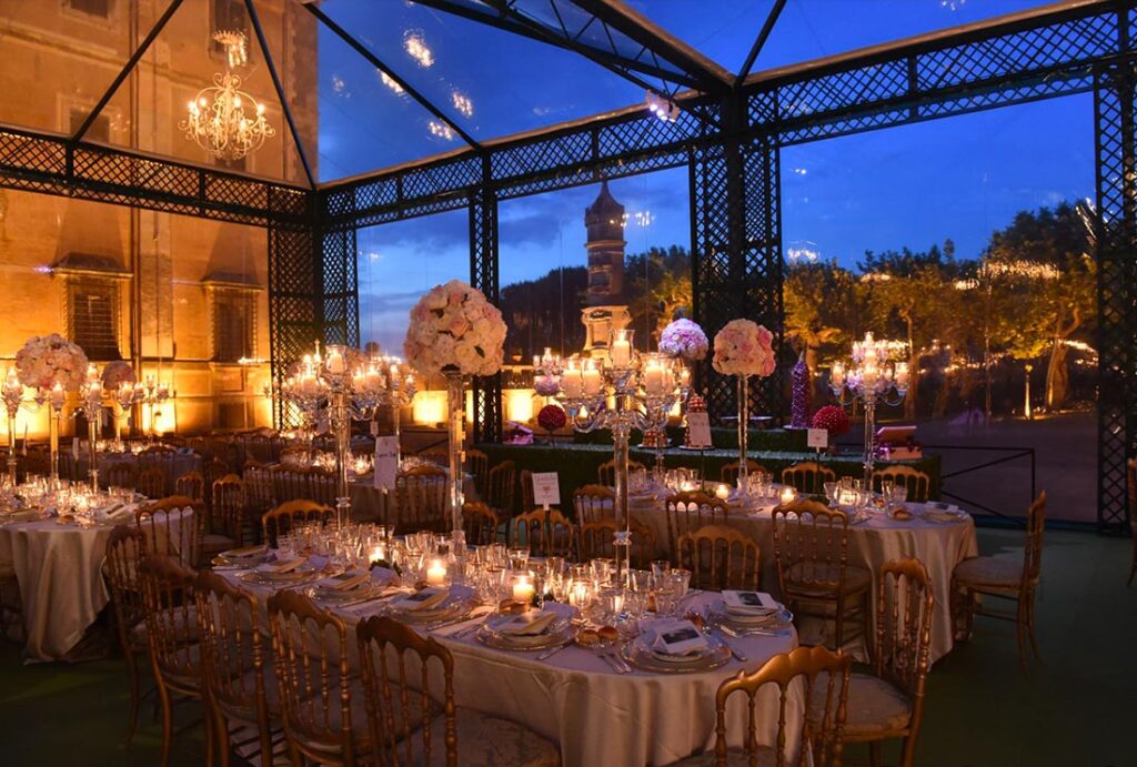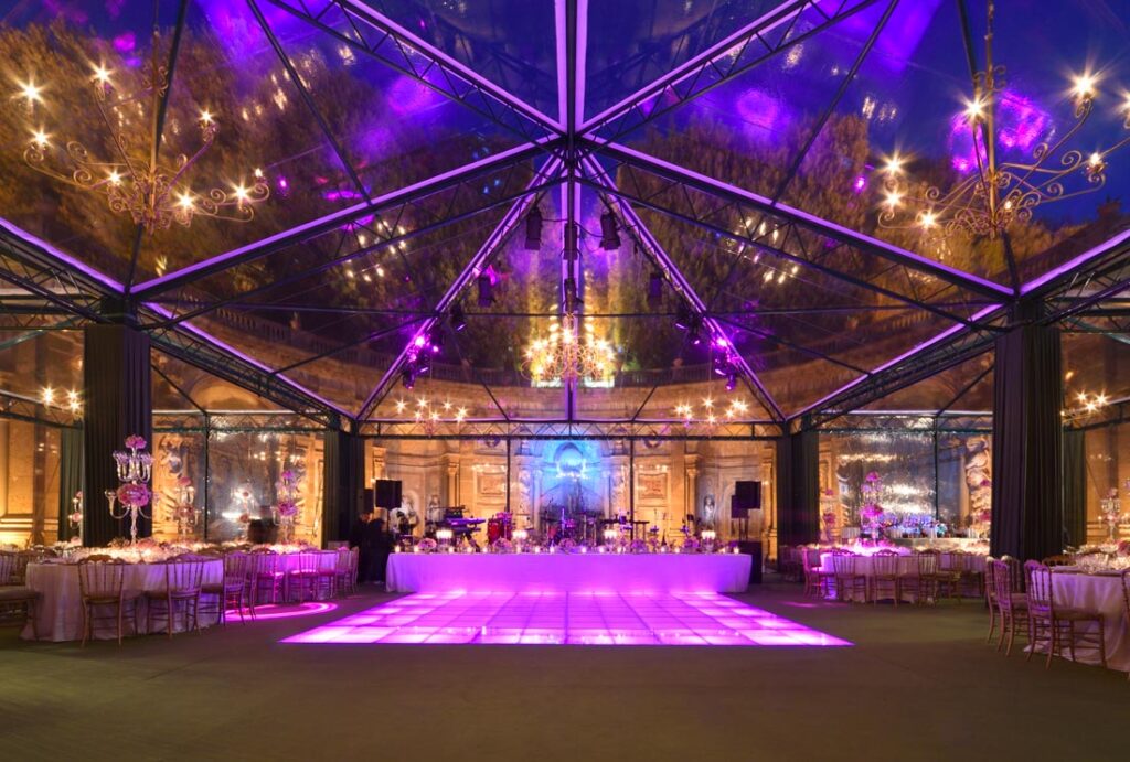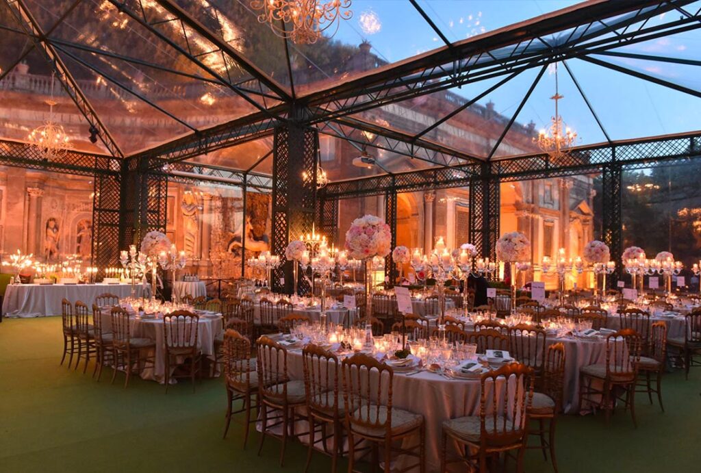 Per ricevimenti di alto livello abbiamo realizzato un allestimento sulla terrazza dell’Hotel Hermitage di Montecarlo. La nostra azienda é in grado di realizzare anche allestimenti personalizzati come quello per una festa privata in Toscana o in ville storiche. Oltre alle strutture modulari di varie misure possiamo offrirvi la nostra struttura 14 x 24 che si integra perfettamente con l’eleganza della location, creando un ambiente sofisticato e panoramico.