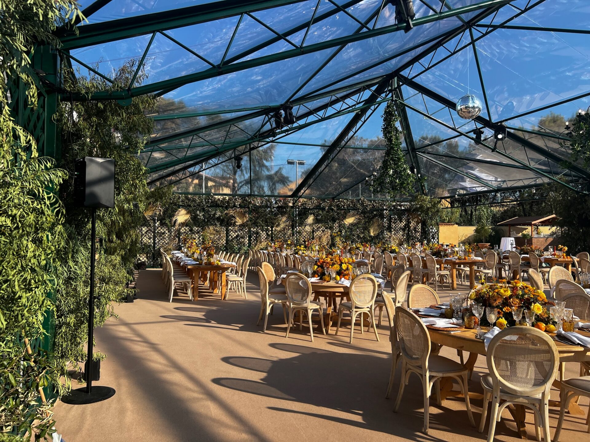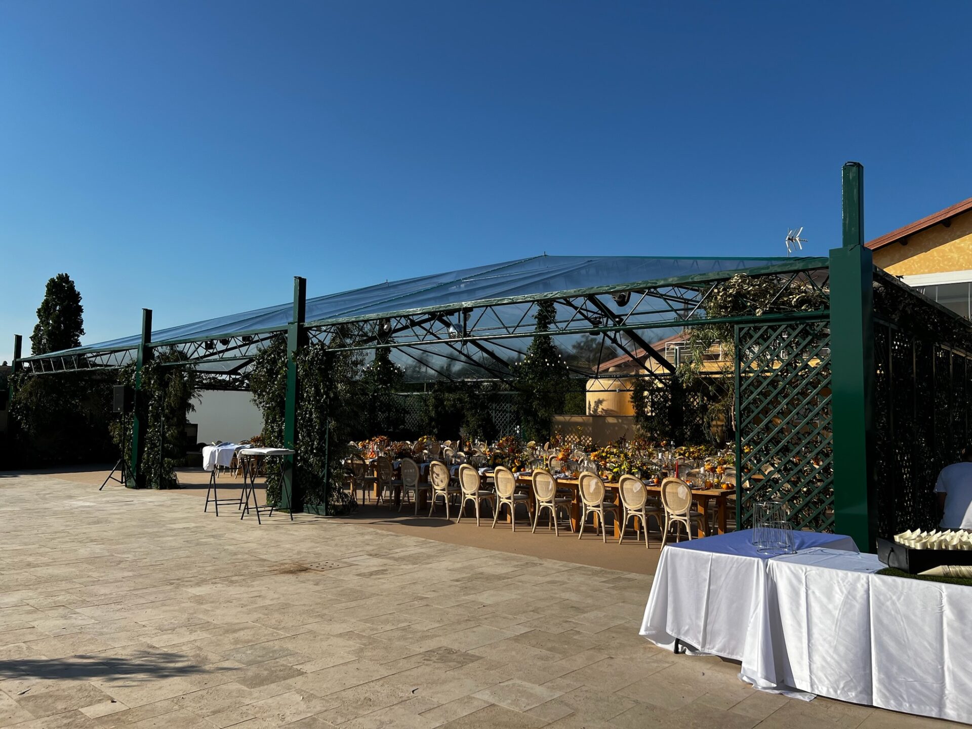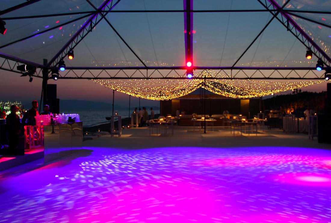 Per ricevimenti di alto livello abbiamo realizzato un allestimento sulla terrazza dell’Hotel Hermitage di Montecarlo. La nostra azienda é in grado di realizzare anche allestimenti personalizzati come quello per una festa privata in Toscana o in ville storiche. Oltre alle strutture modulari di varie misure possiamo offrirvi la nostra struttura 14 x 24 che si integra perfettamente con l’eleganza della location, creando un ambiente sofisticato e panoramico.