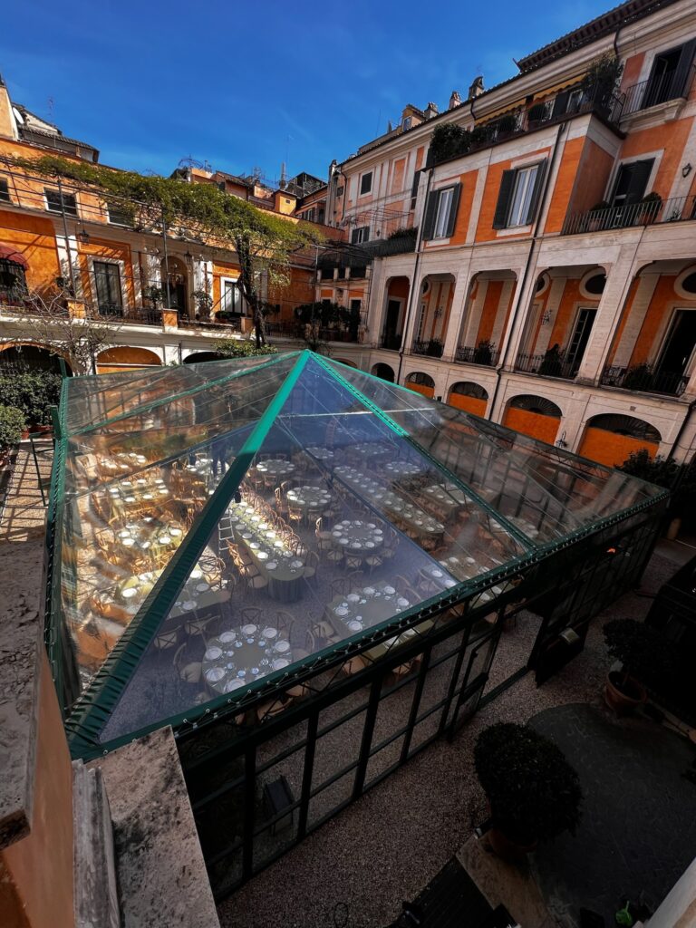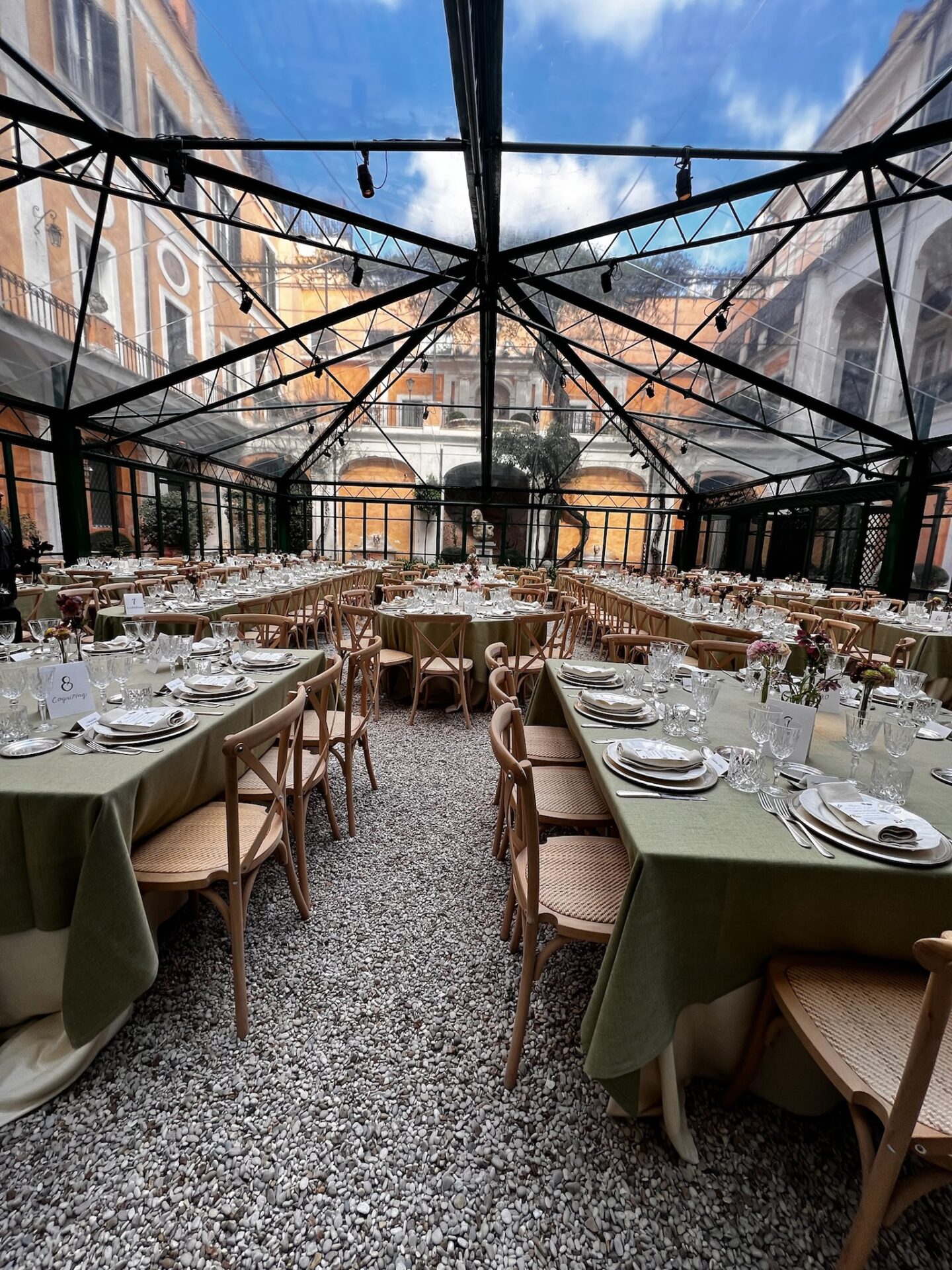 Il risultato è un allestimento elegante e funzionale, capace di esaltare la bellezza di Palazzo Torlonia e di offrire un’esperienza esclusiva, all’altezza di una location storica tra le più rappresentative di Roma.