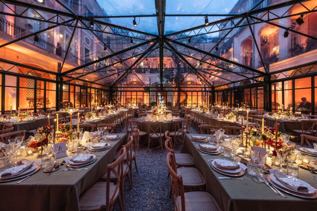 Le strutture utilizzate sono soluzioni temporanee e non invasive, studiate per integrarsi armoniosamente con gli ambienti del palazzo senza alterarne l’identità. Materiali di alta qualità, finiture curate e linee pulite contribuiscono a creare un’atmosfera raffinata.